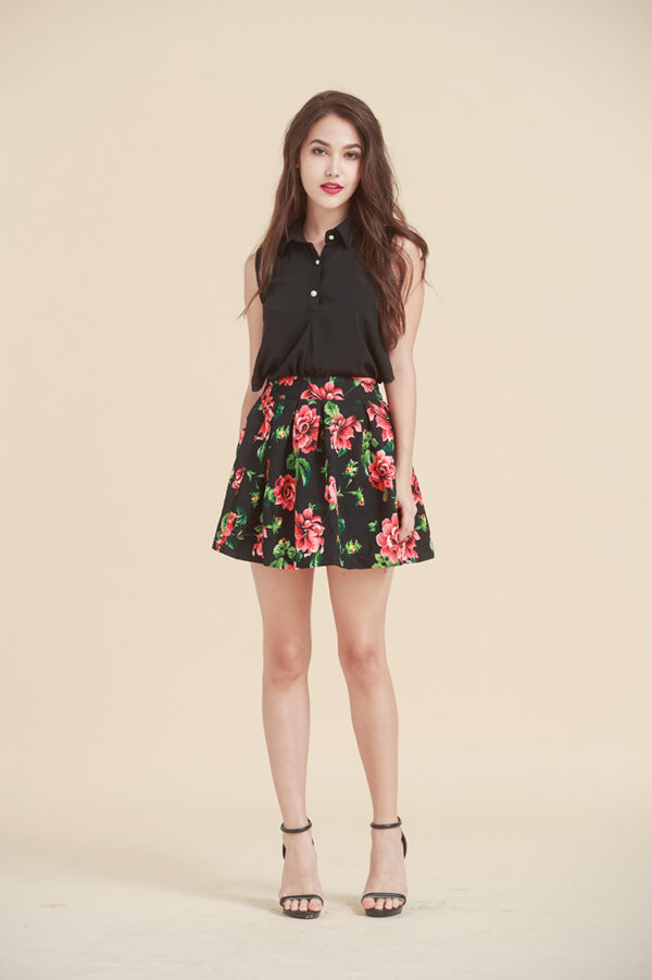 珍珠白襯衣&緊連薄紗荷葉碎花裙