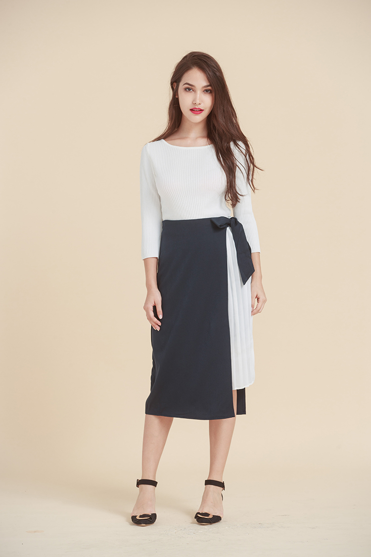 針織連身洋裝&剪裁中長裙